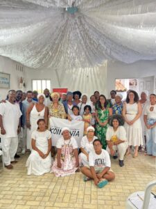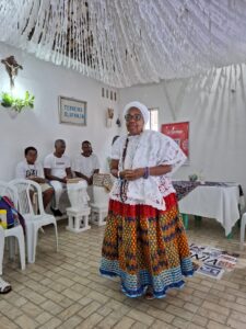 Durante o evento foi relembrado pelas lideranças do Terreiro Olufanjá da parceria histórica com KOINONIA, incluindo, a participação na elaboração da Cartilha “Identidades e Desenvolvimento: ação e pensamento de comunidades negras rurais, quilombos e terreiros de candomblé”, publicada em 2009 (link aqui: https://kn.org.br/wp-content/uploads/2017/10/koinonia.org.br-identidade-e-desenvolvimento-acao-e-pensamento-de-comunidades-negras-rurais-quilombolas-e-terreiros-de-cadomble-identidade-e-desenvolvimento.pdf) ressaltando que a pauta da justiça climática já era levantada pelas comunidades tradicionais desde antes da repercussão das mudanças climáticas e os casos de racismo ambiental noticiados na atualidade.